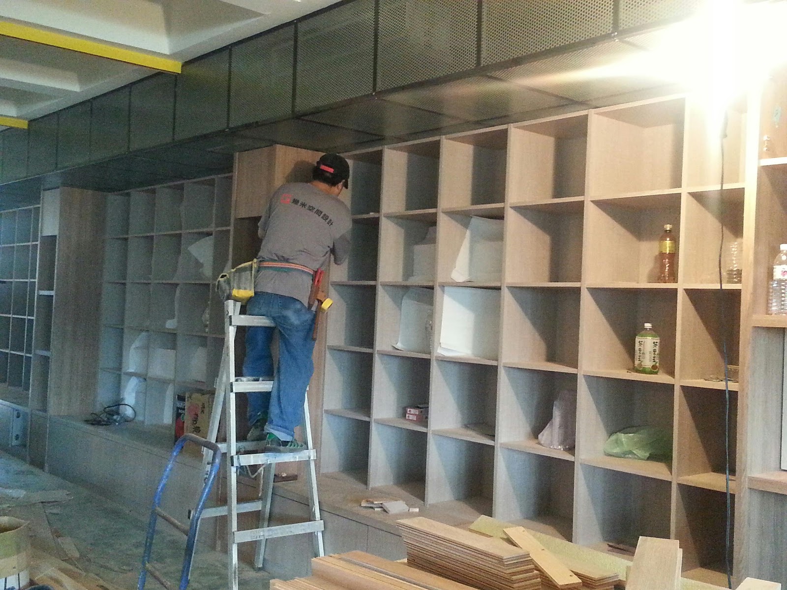 還在調整動線,將這張展示桌搬到這裡,這個門比較少學生進出,展示在此,不會擋住視線。